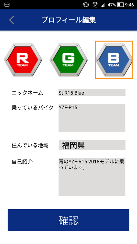 ウチの愛車「YZF-R15」のカラーは「青」なので、青チームに所属することにしました。