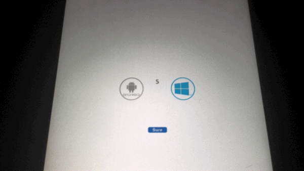 「iWork」ですが、デュアルブートモデルなだけに、電源を入れると「Windows」or「Android」の選択画面が表示されます。