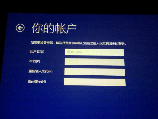 この「ユーザー名」や「パスワード」の設定の前にネットワーク設定が出る場合があります。その場合は、設定すると「Microsoft」のアカウント設定に移動しますので、既に持っていれば設定した方がいいですが、持っていなければ「跳过此步骤」をクリック/タップすれば、設定せずに先に進む事ができます。