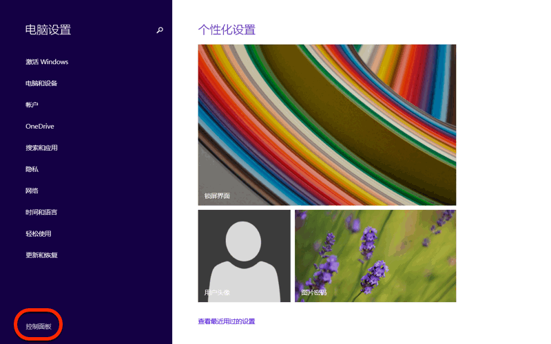 ここで表示される左下の文字、これが「コントロールパネル」です。ここをクリック/タップします。