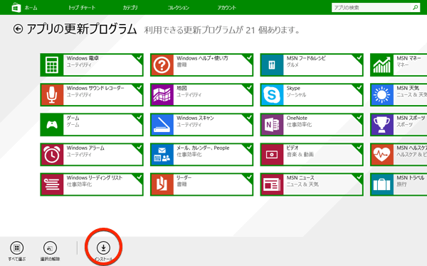 スタートメニューに戻り、カバンのマークの「Store」を起動します。