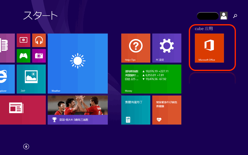 「Windows 8.1」のスタート画面に「Microsoft Office」のマークがあるので、タップ/クリックしてみます。