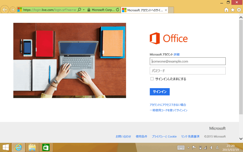 「Microsoft アカウント」でのログインを求められます。