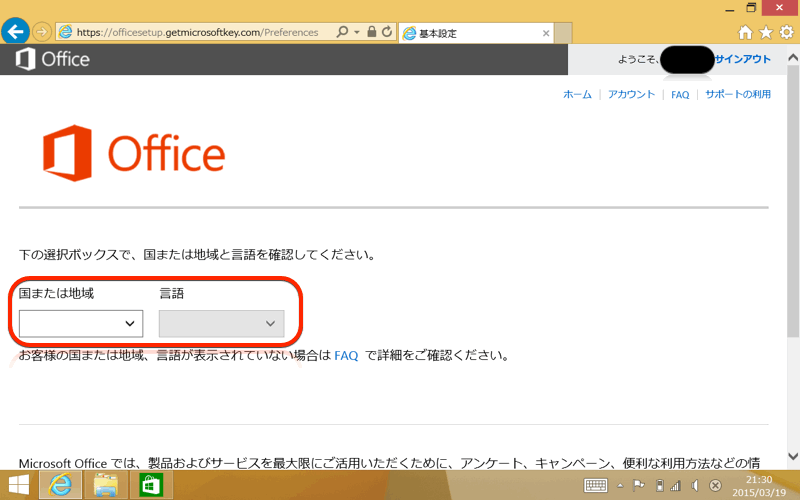 国と言語を選択します。