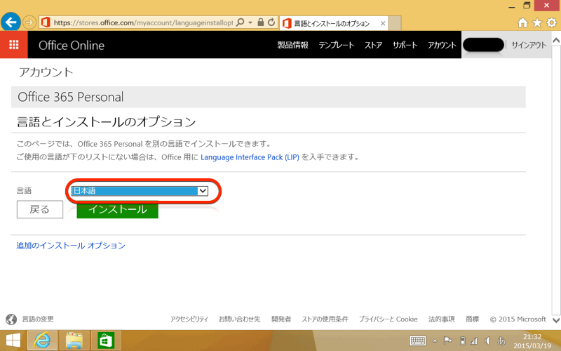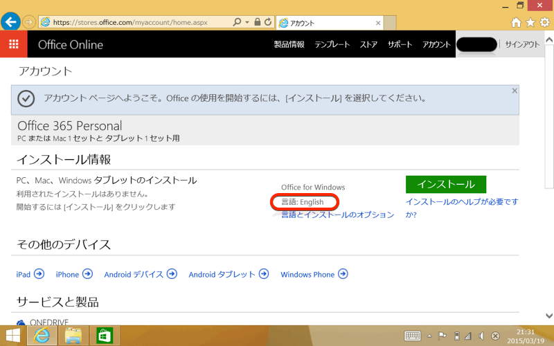 「Office 365」をインストールする前に、「Windows 8.1」の日本語化を先にしておきましょう。