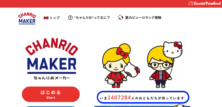 「サンリオ」が「ピューロランド」オリジナルのキャラクター「ちゃんりお」をつくることのできる「ちゃんりおメーカー」のキャンペーンをスタートしています。